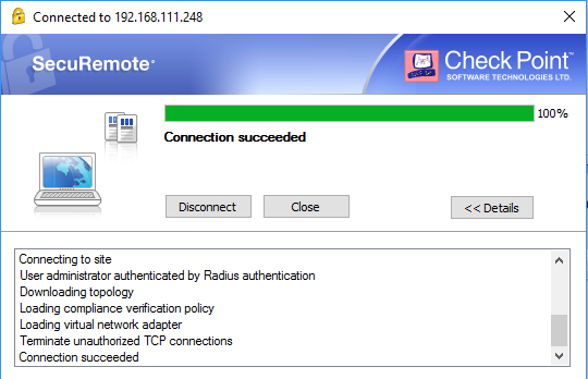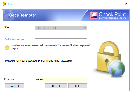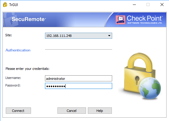 - Launch CheckPoint SecuRemote VPN client. Provide your username and password.