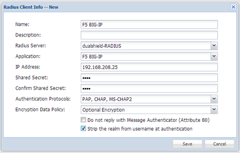 - Enter the Shared Secret which will be used in F5 BIG-IP.