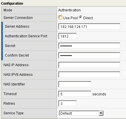 - Populate the fields. In this example, we have the DualShield RADIUS server installed IP 192.168.124.171, port 1812