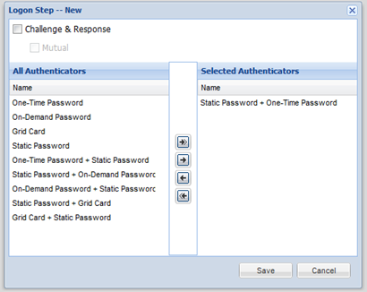 - Select the desired authentication method, e.g. “Static Password + One-Time Password”