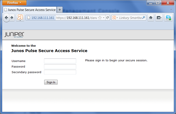 At logon, Juniper SA will present a logon form with the user name, password and the secondary password: