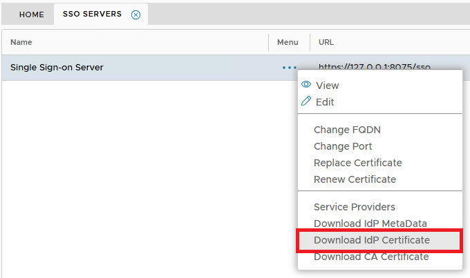 2. Click the context "..." menu of the SSO server, then select “Download IdP Certificate”