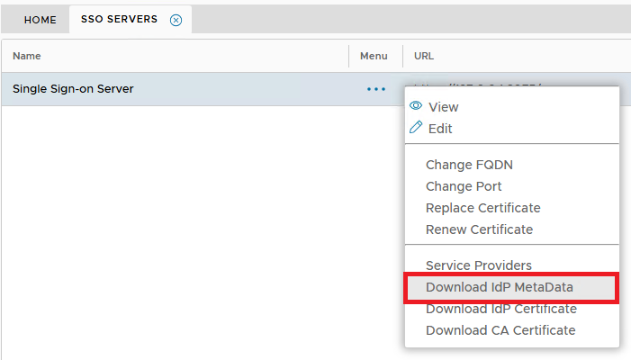 1. Click the context "..." menu of the SSO server, then select "Download IdP Metadata"
