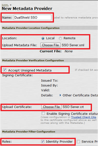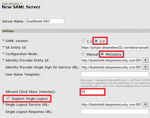 In the Juniper SA management console, open the newly created SAML authentication server.