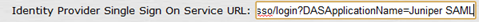 6. Append "?DASApplicationName=[Application Name]" to the end of "Identity Provider Single Sign On Service URL"