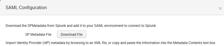 Upon successfully completed SAML configuration on Splunk, SP Metadata will be ready for download.