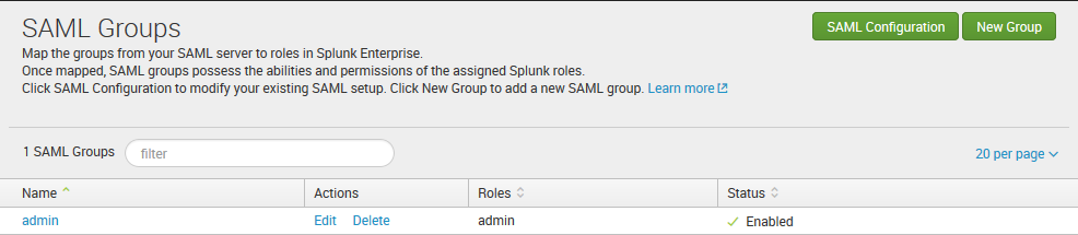 - Click Configure Splunk to use SAML.