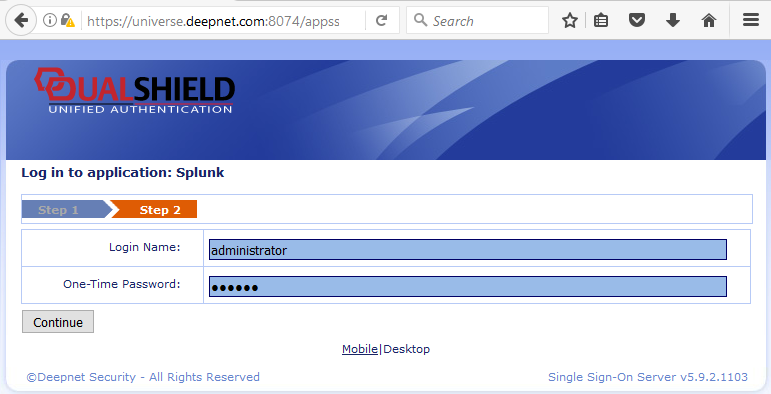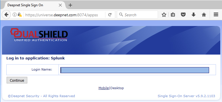 Testing the SAML authentciation for Splunk, navigate to Splunk logon page, e.g.