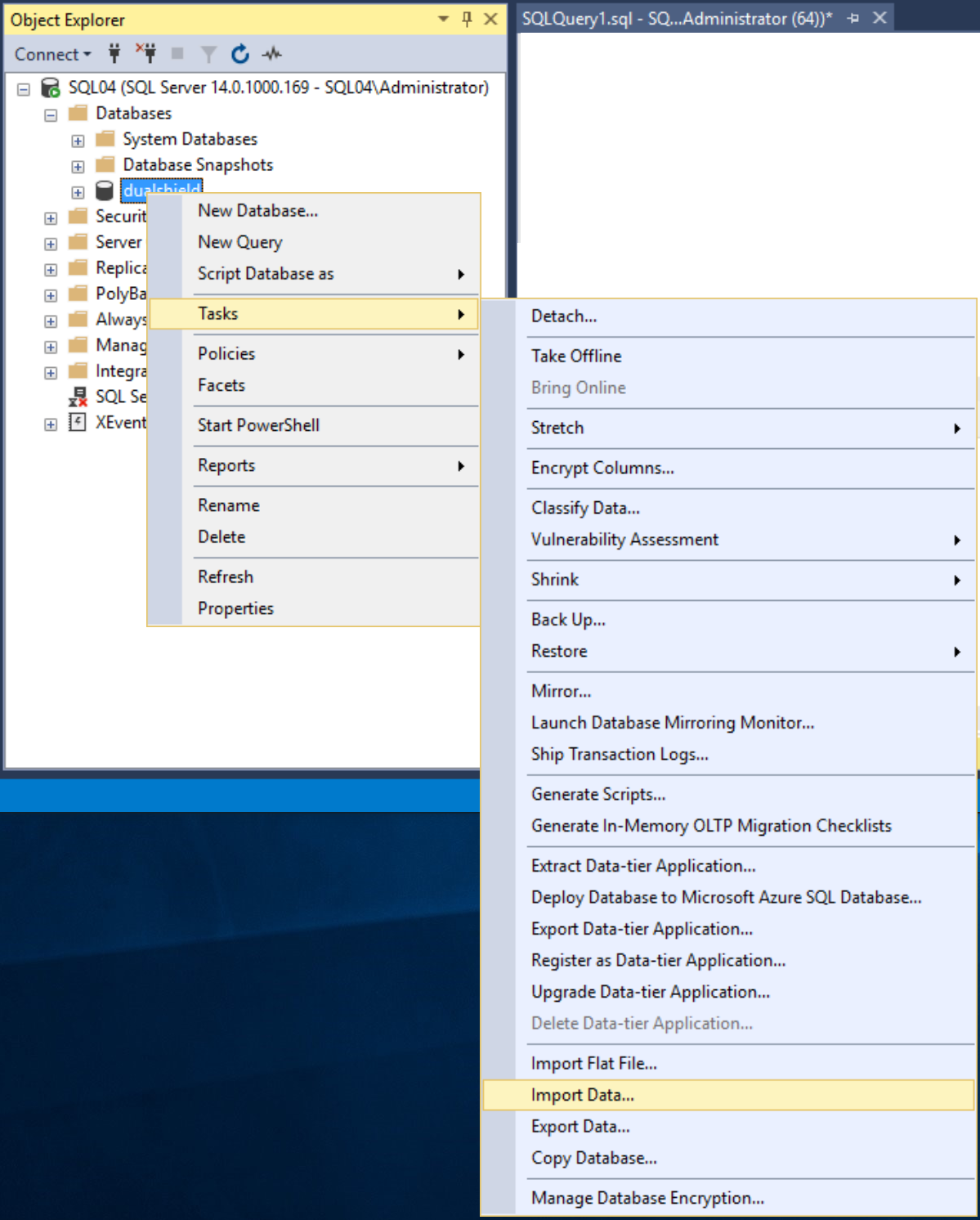 2 - Right click the DualShield database. By default it is named as "DualShield"
