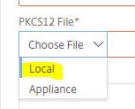 *NOTE: By using the dropdown arrows where it says Choose File, it is possible to read the .p12 file from the local PC/Server where you did the Backup.