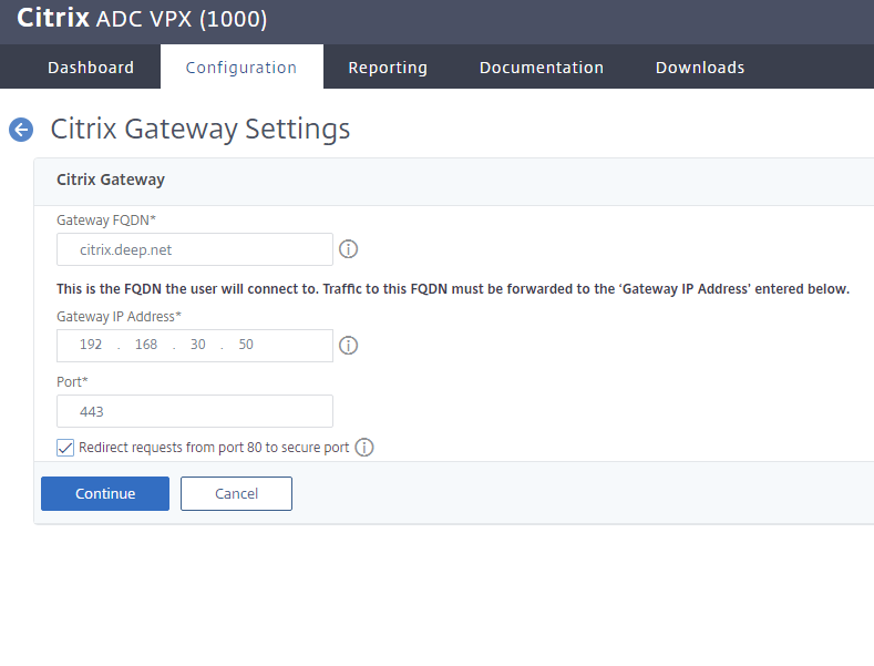 Type in the FQDN and IP address of your Citrix Gateway: (Also add this to your DNS records)