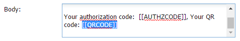 - At the prompt "Body:" include the text "[[QRCODE]]".