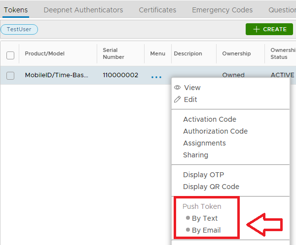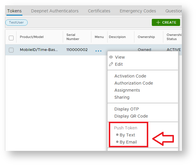 The token details for the selected user will now be show, left click on the context menu of the token to be pushed to the user then select the message channel to send the token (normally "By Email");