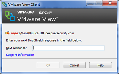 The user name and AD password will be submitted to DualShield to be verified. If the user’s credentials are successfully verified, DualShield will generate an on-demand password to the user via the specified channel. VMware View will then prompt the following screen: