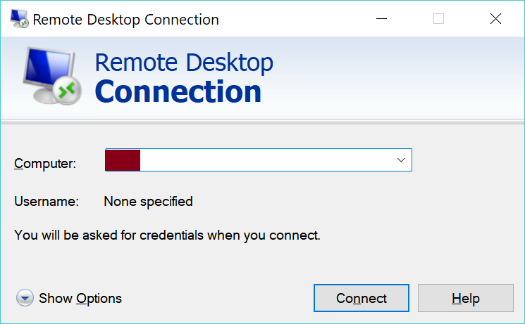 In the "Computer" box, enter the name of the computer that you want to connect to.
