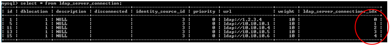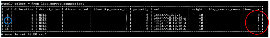 Update ldap_server_connection set ldap_server_connections_idx = ldap_server_connections_idx – 1 where ldap_server_connections_idx > #