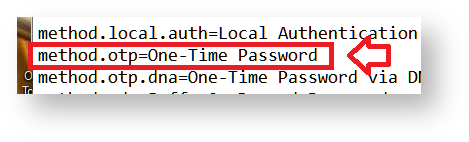 Replacing the text "One-Time Password" with your required customisation will cause the management console to replace the text when authentication methods are listed in the management console.